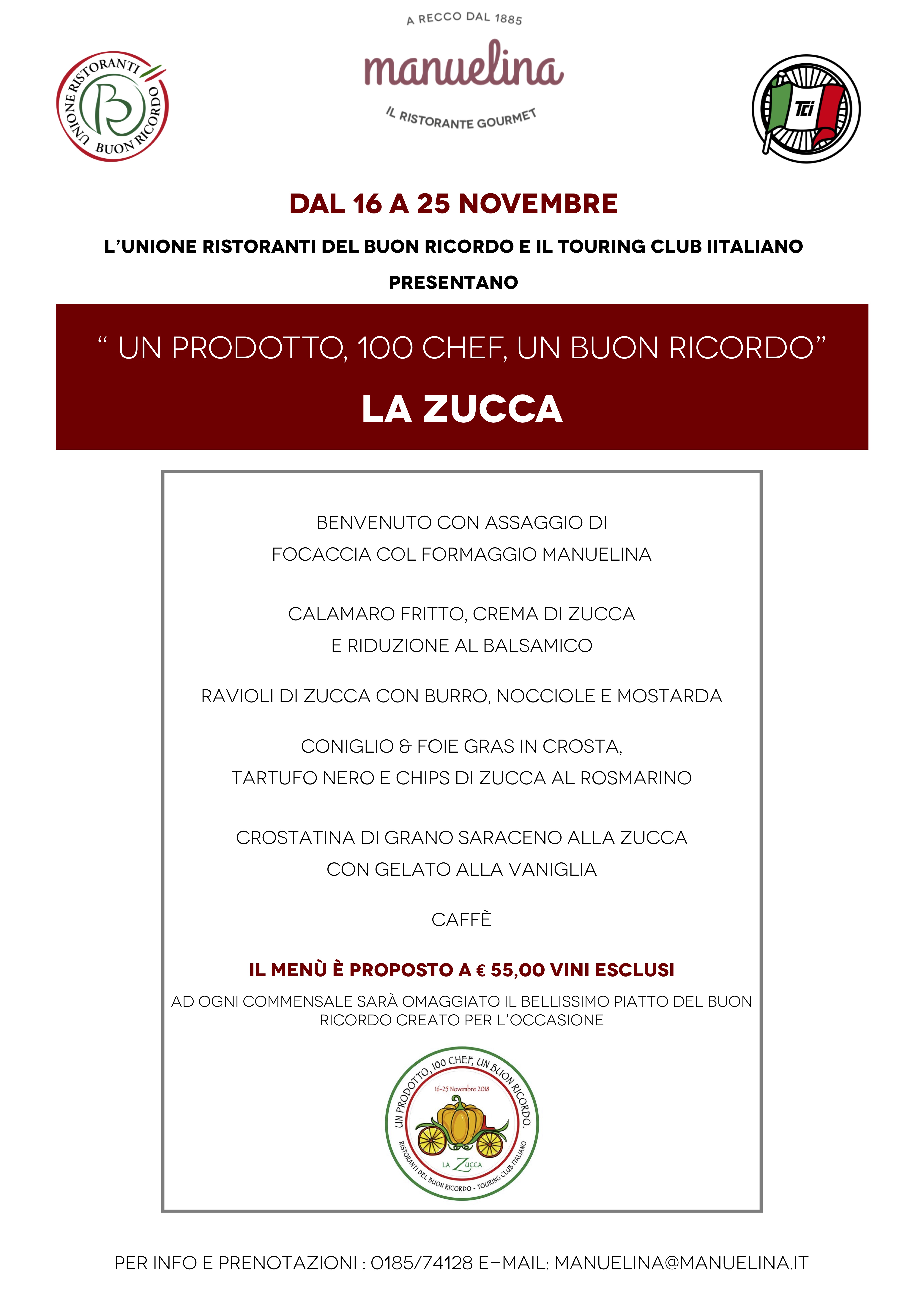 Dal 16 al 25 novembre il Ristorante Manuelina proporrà un menu creato dallo chef Marco Pernati con la zucca come protagonista.