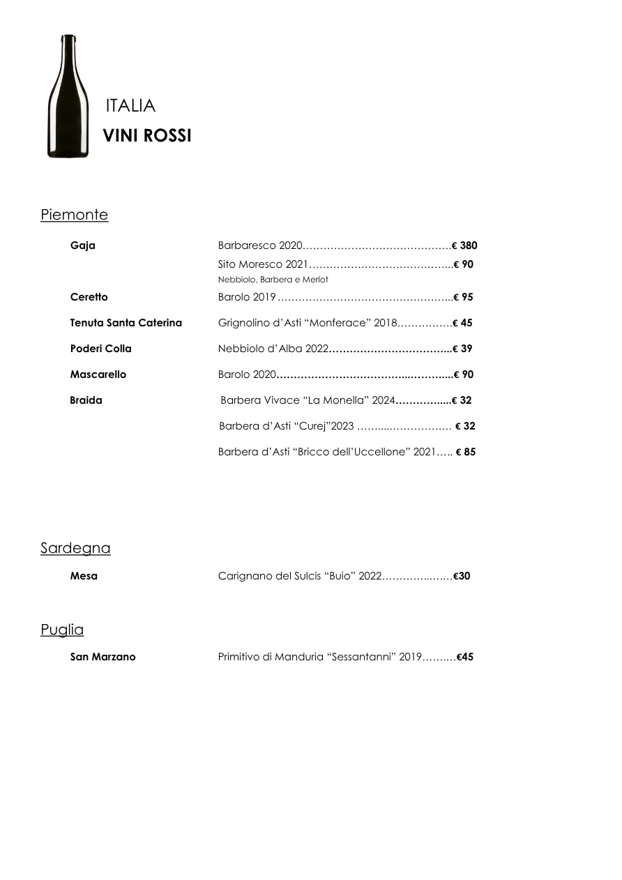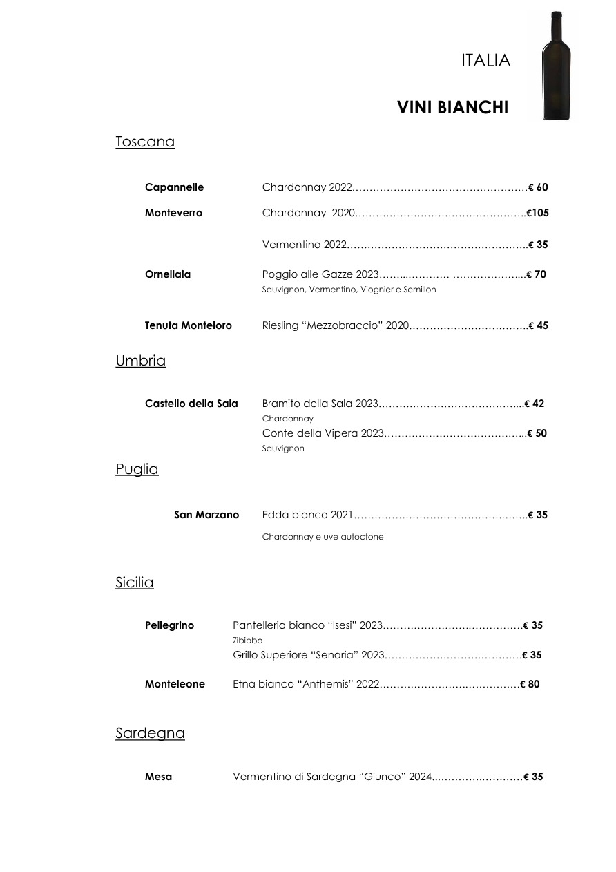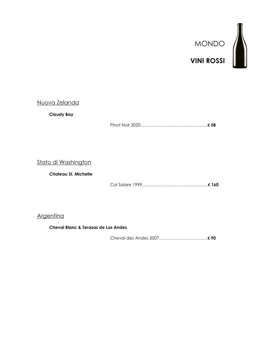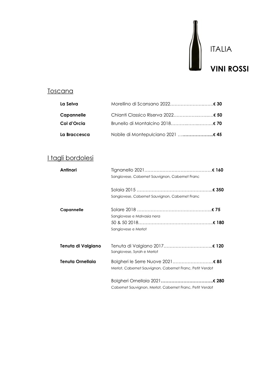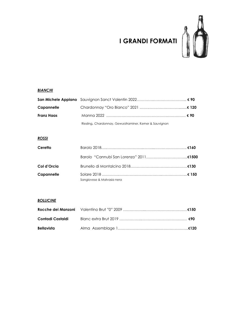 La carta dei vini