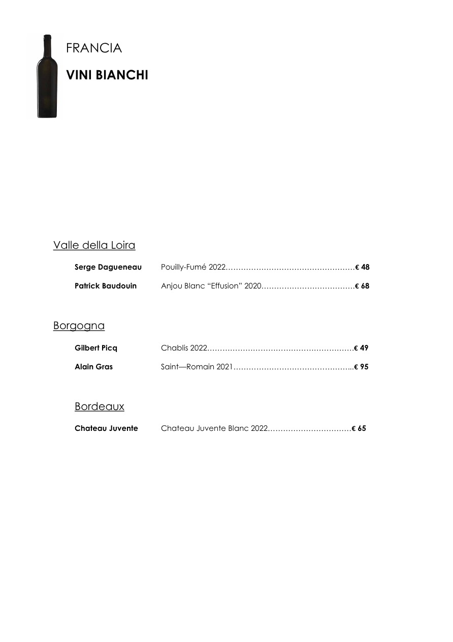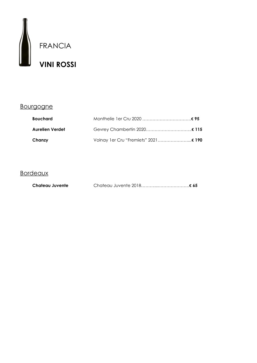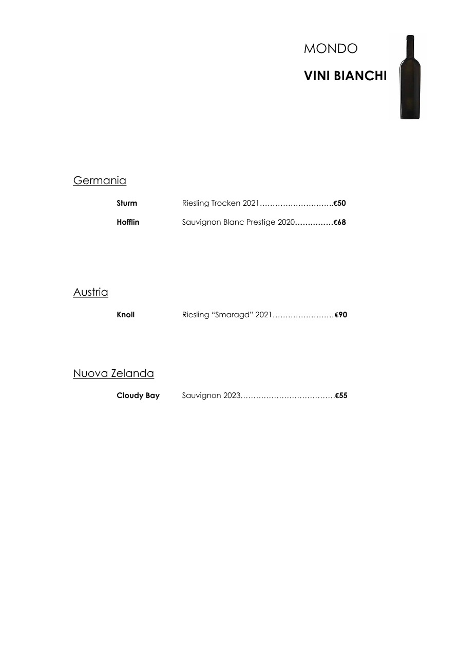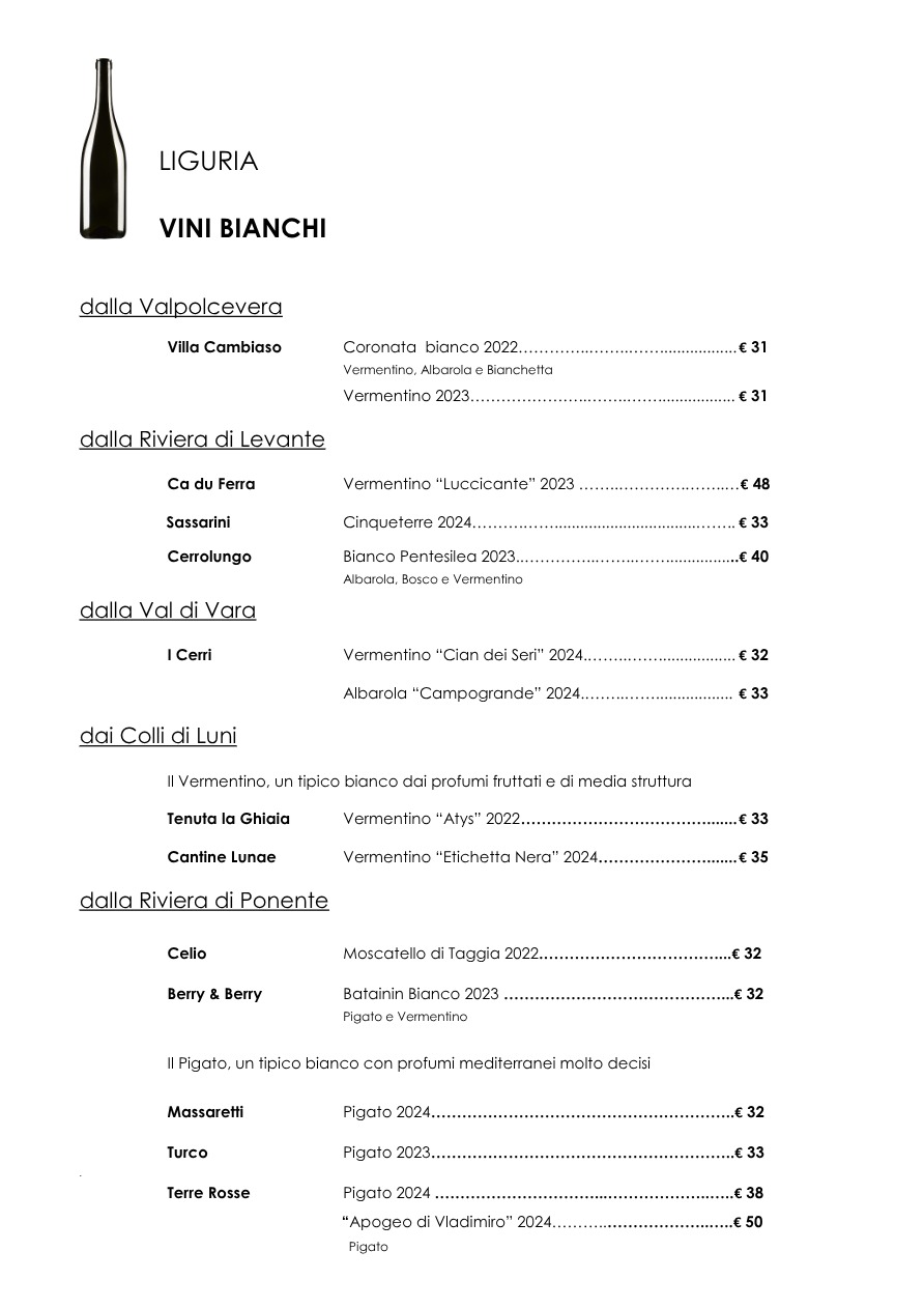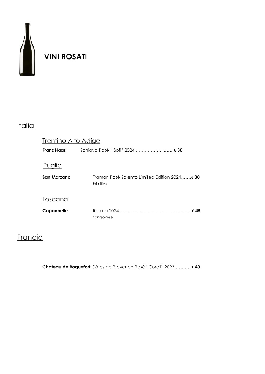 La carta dei vini